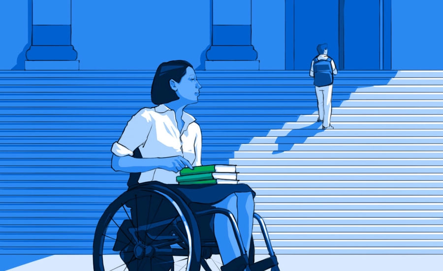 Бугунги кунда ногиронлиги бўлган шахсларнинг олий таълим муассасаларига ўқишга киришлари учун бир қатор имтиёзлар соҳавий қонунчилик асосида яратиб берилмоқда. 641-сонли қонуннинг 40-моддасига асосан ногиронлиги бўлган шахслар учун олий таълим муассасаларида давлат гранти асосида абитуриентларни қабул қилиш умумий сонининг 2 % (икки фоизи) миқдорида қўшимча қабул квотаси белгилаб қўйилган.