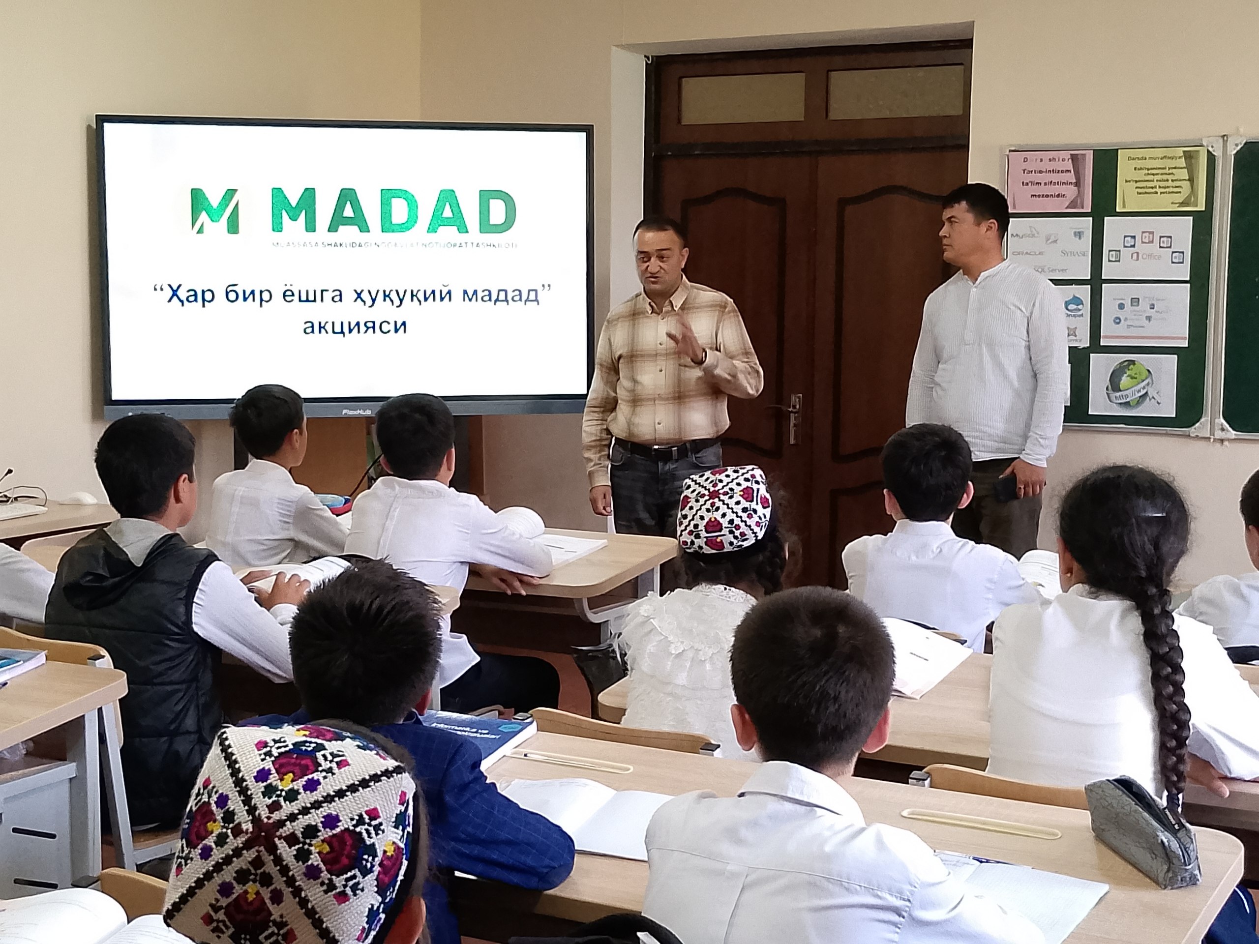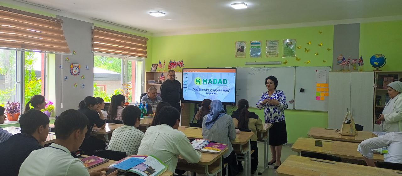 Шу кунларда “Мадад” нодавлат нотижорат ташкилоти ва унинг жойлардаги ҳуқуқий маслаҳат бюролари адлия органи ходимлари билан ҳамкорликда “Ҳар бир ёшга ҳуқуқий мадад” акциясини ўтказмоқда.