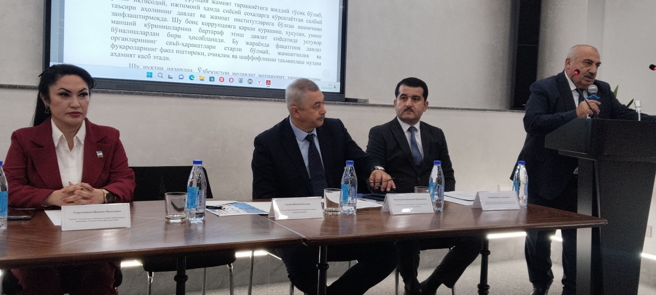 Мазкур тадбирда давлат органлари ва фуқаролик жамияти институтлари вакилларидан иборат 40 нафар иштирокчи қатнашиб, маиший коррупциянинг мавжуд ҳолати, унинг келиб чиқиш сабаблари ҳамда бартараф этиш механизмлари муҳокама қилинди.