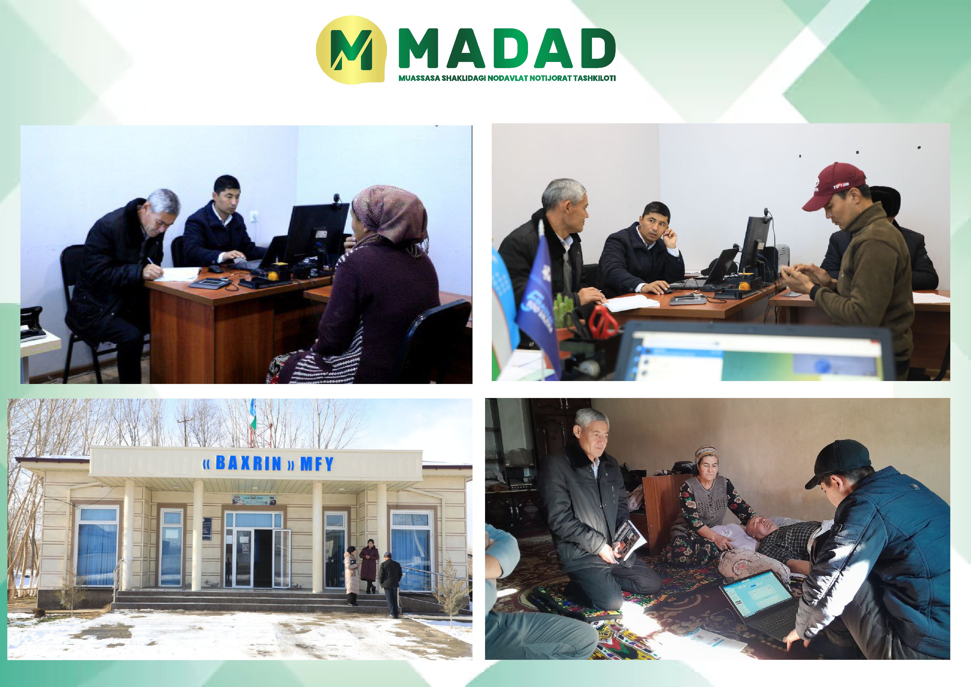 Жумладан, “Мадад” ННТ ходимлари “Адлия куни”, “Ҳуқуқий тарғибот куни” ҳамда сайёр қабулларда иштирок этиб, аҳолига, авваламбор, ижтимоий ҳимояга муҳтож шахсларга бепул бирламчи юридик ёрдам кўрсатмоқда, ҳуқуқий муаммоларни суд ва бошқа давлат органлари орқали ҳал этишда зарур бўладиган ариза, шикоят ва даъво аризалари каби ҳуқуқий ҳужжатларни тайёрлашда кўмаклашмоқда.