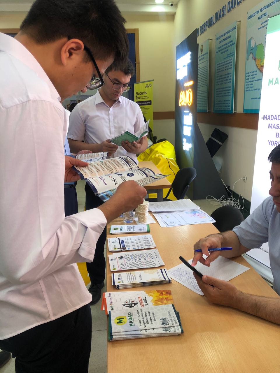 Мадад ННТ тадбирда муассаса фаолиятини ёритувчи кўргазмали жиҳозлар ва бўш иш ўринлари тўғрисидаги маълумотлар билан қатнашиб, талабаларга ишга қабул қилиш тартиби ва шартлари, мавжуд вакант ўринлари, меҳнат ҳамда маиший-маданий шарт-шароитлар бўйича маьлумот беришди.