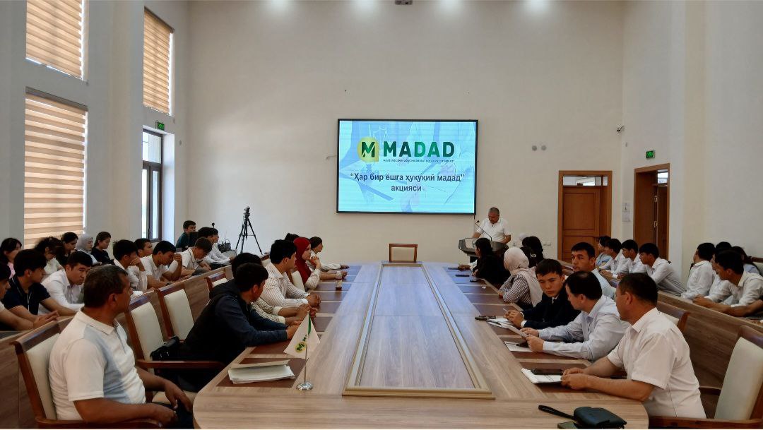 Ўзбекистон ёшларининг ҳуқуқий саводхонлигини оширишга қаратилган “Ҳар бир ёшга ҳуқуқий мадад” акциясининг биринчи кунида 5000 дан ортиқ талаба ва ўқувчилар қамраб олинди. Акциянинг очилиш кунида республиканинг турли ҳудудларидаги 68 та мактаб ва 2 та университетда кенг кўламли тадбирлар ўтказилди.