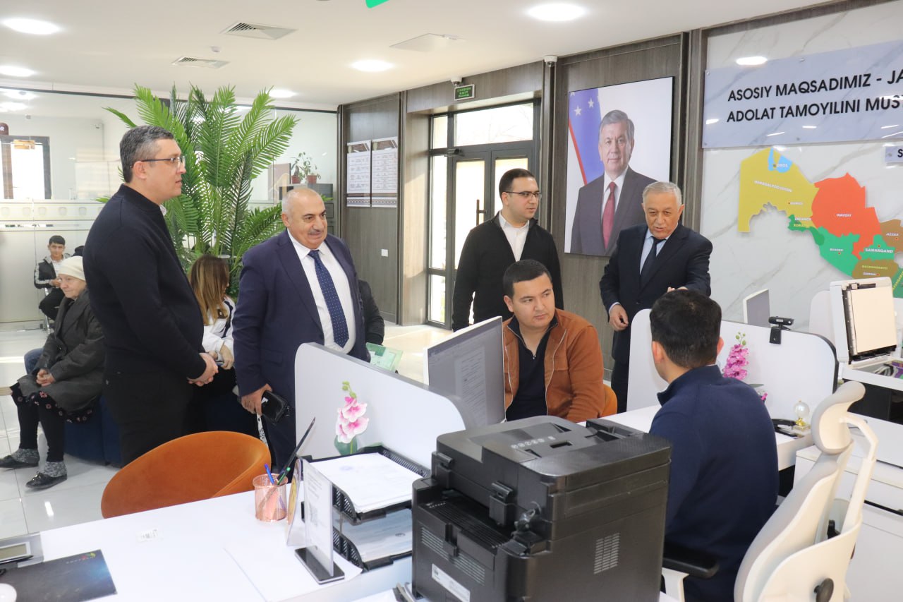 Сафар давомида марказда аҳоли ва тадбиркорлар учун яратилган шарт-шароитлар, хизмат кўрсатиш жараёнларининг қулайлиги ҳамда очиқлик тамойилларига амал қилиниши ўрганилди.